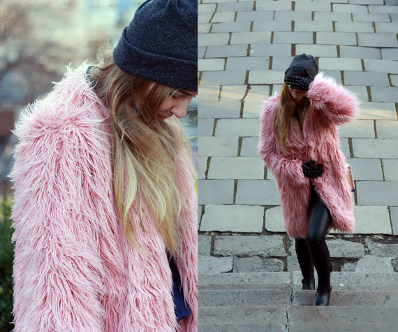 Faux fur coat / powder pink alpaca coat / rose quartz coat / shaggy fur coat / Fake fur coat/ Blush pink coat/ Fluffy coat/ burning man coat