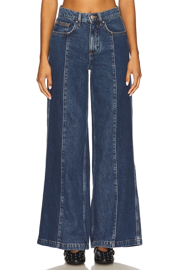 Female Model wearing Seventy Mochi Two Tone Bay Wide Leg Jeans Jeans. Showing image 1 of 6
