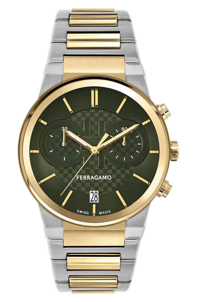 FERRAGAMO Sapphire Chronograph Bracelet Watch, 41mm, Main, color, Two Tone