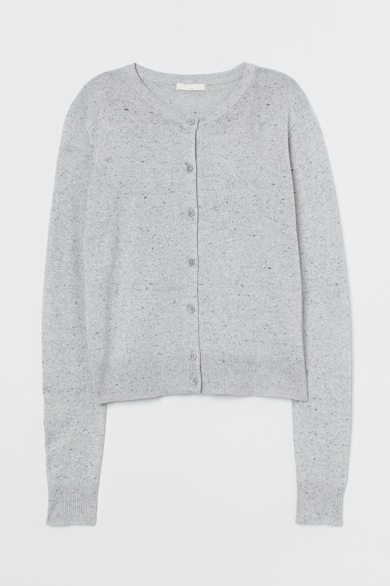 Fine-knit Cardigan - Light gray melange - Ladies