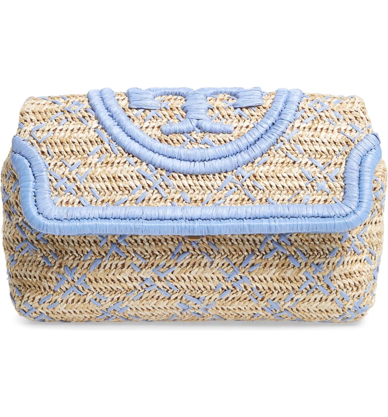 Fleming Raffia Clutch, Main, color, NATURAL/ BLUEWOOD