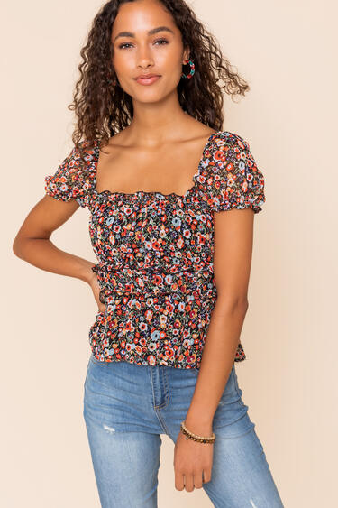 women's floral smocked blouse