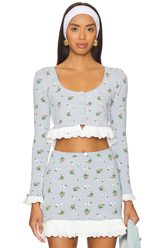 For Love & Lemons Amalia Knit Cardigan in Blue | REVOLVE