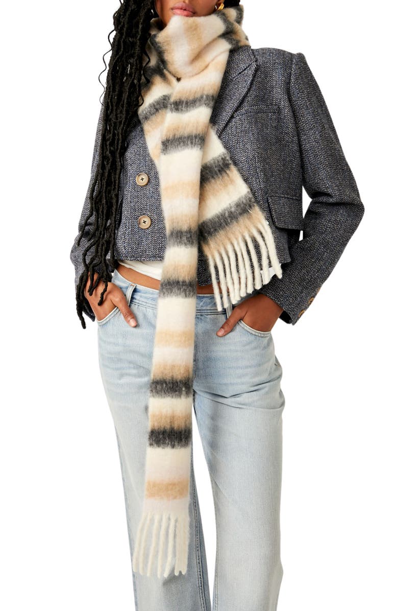 Free People Sweet Valley Stripe Fringe Scarf, Main, color, EARTH