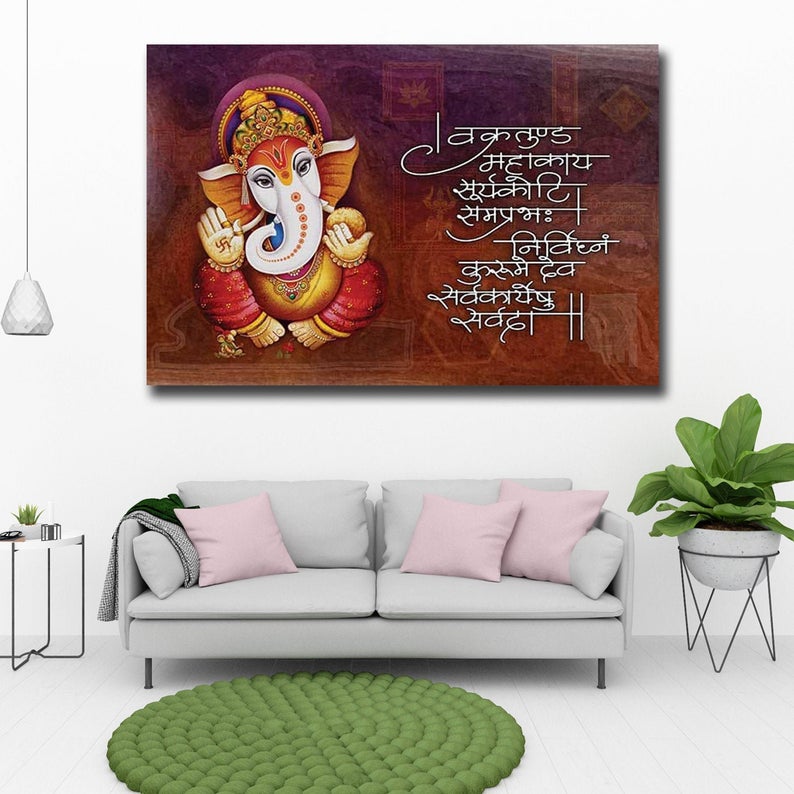 Ganesha With Mantras Canvas Wall Art Canvas Print image 0