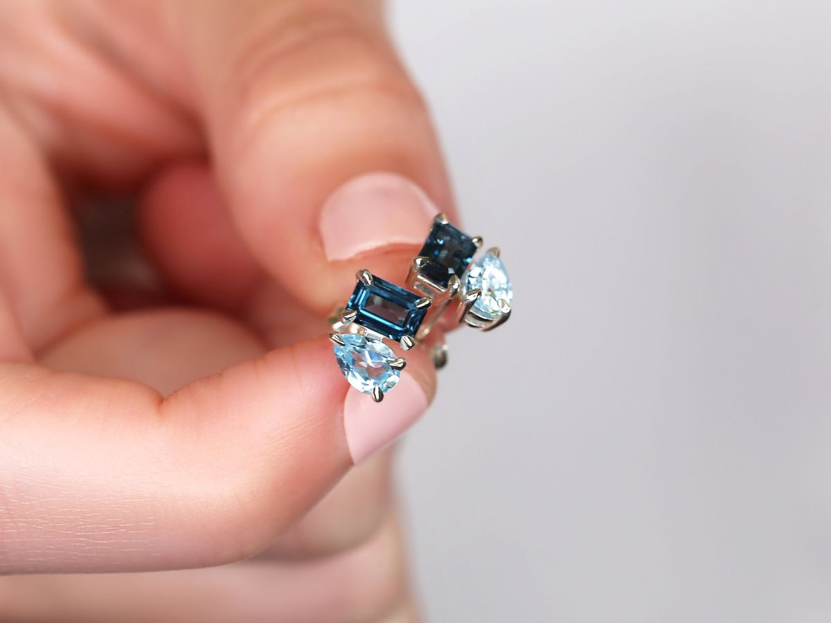Gemini 14kt Blue Topaz Toi Et Moi Cluster Earrings