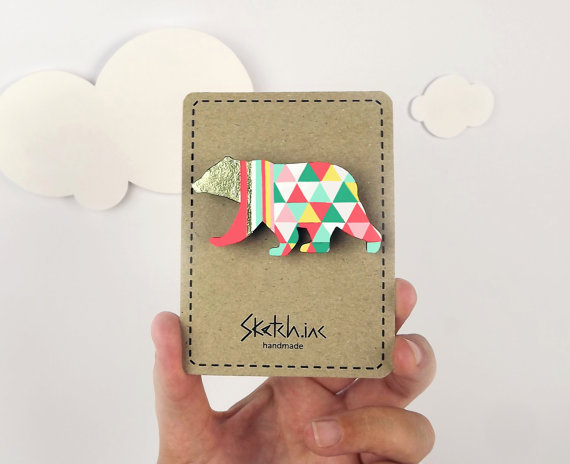 Geometric Bear Brooch Neon 'Harlequin Bear'