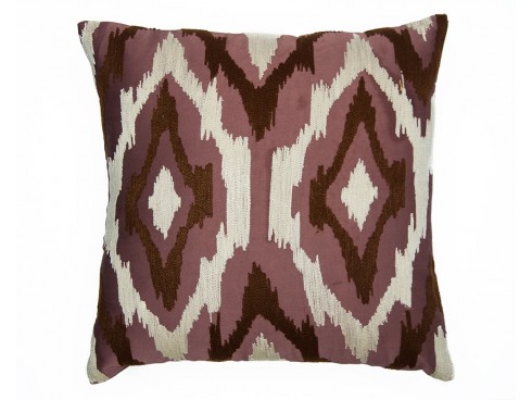 Geometric Designed Brown Crewel Embroidered Cotton Cushion Cover