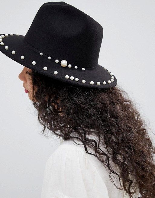 Glamorous faux pearl fedora hat