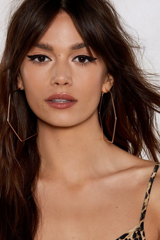 Gold Hexagon With the Wind Hoop Earrings