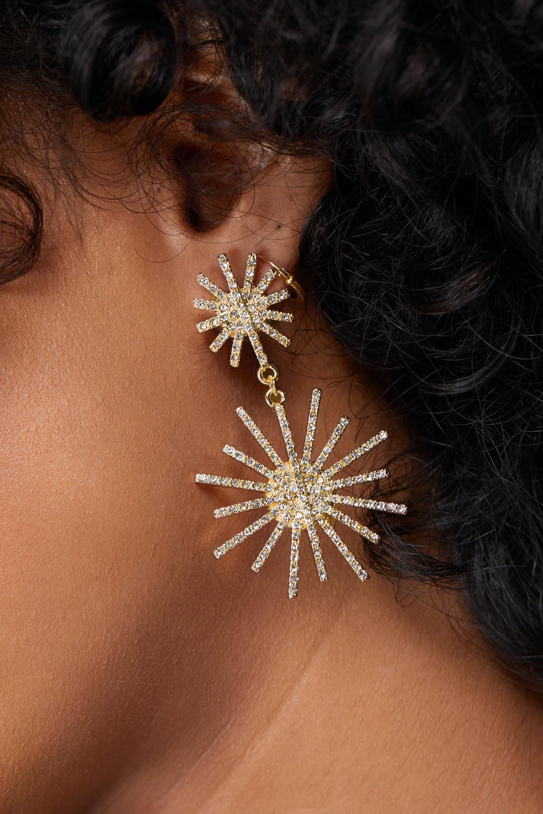 Gold Sun Diamante Drop Earrings