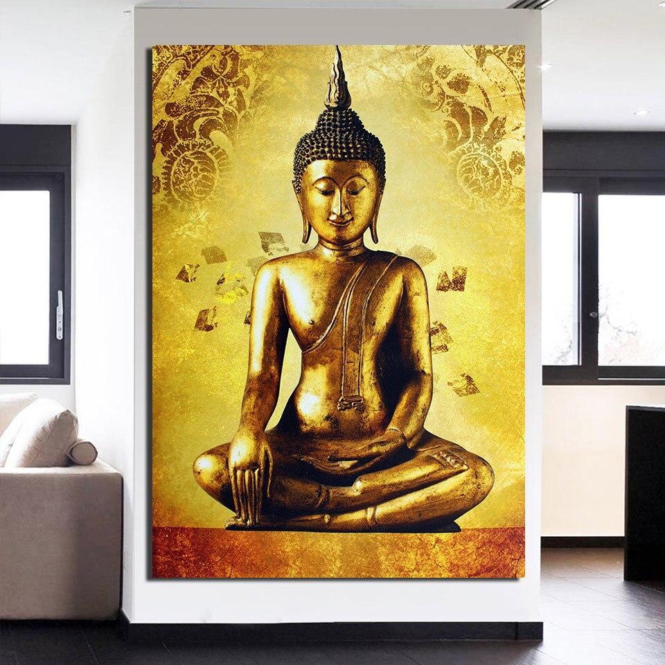 golden buddha framed art canvas painting WITH FRAME HQ Canvas Print