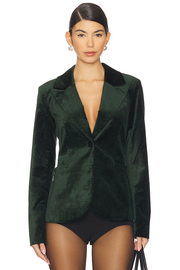 Good American Velvet Sculpted Blazer in Pine Green003 | REVOLVE