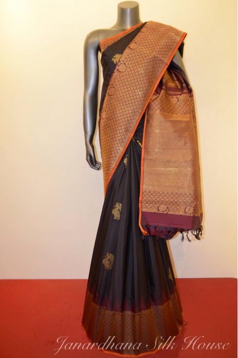 Gorgeous Black Kanjeevaram Silk Saree With Rising Contrast Border