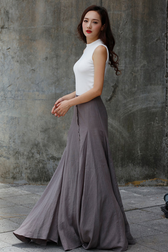 Gray Sexy Maxi Skirt Floor Length Linen Skirt by Sophiaclothing