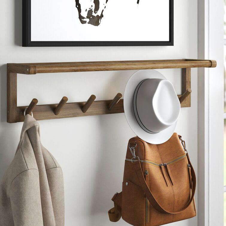 Hales 33.22'' Wide Solid Wood 7 - Hook Wall Mounted Coat Rack with Storage