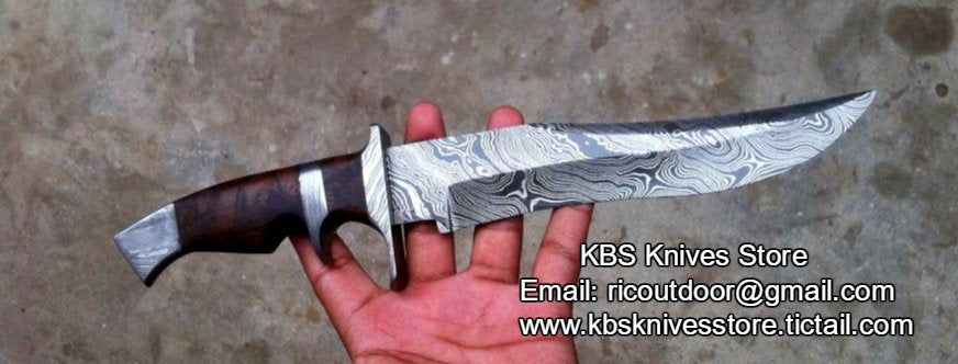 Original Bowie Knife - Full Tang Damascus Steel Blade, Rosewood Handle, Damascus Guards | KBS Knives