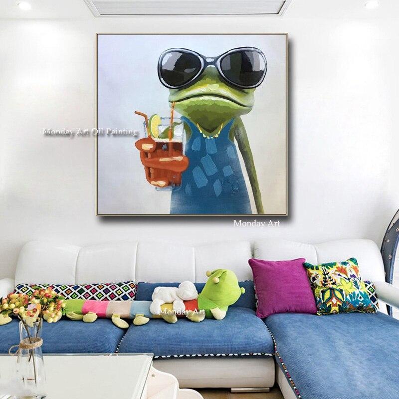 Hand Painted Acrylic animal Oil Paintings Lady Frog oil painting Modern Abstract Animal Wall Art canvas picture