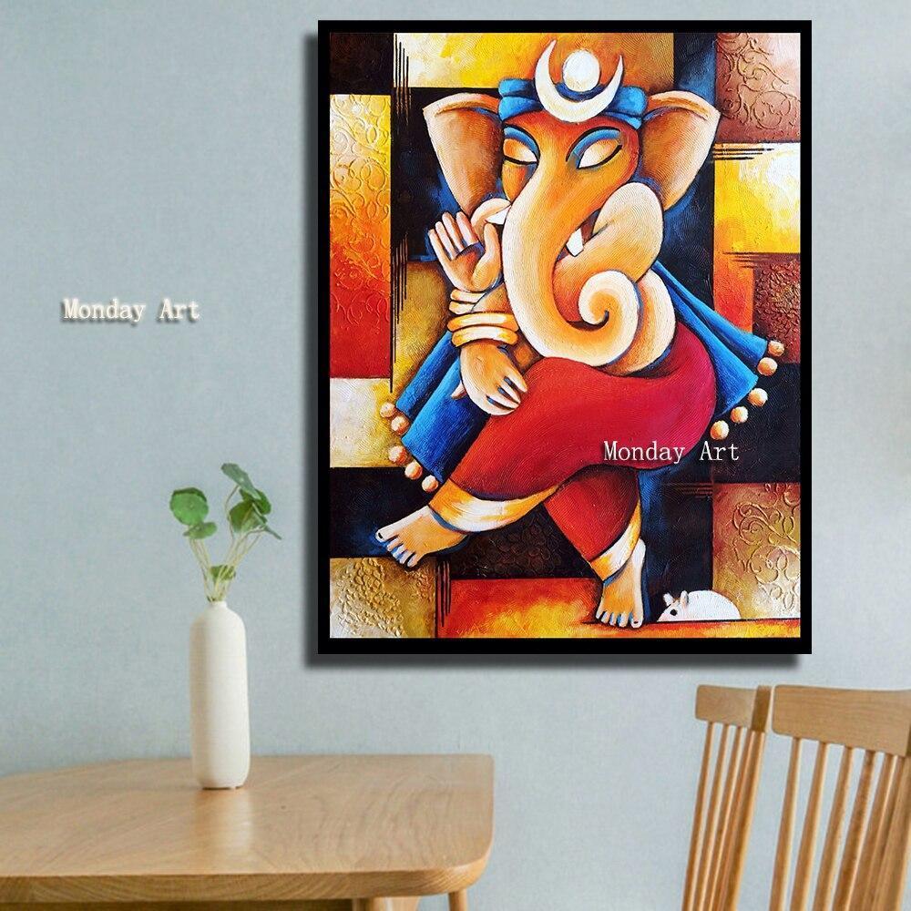 Hand Painted Canvas oil painting Wall Art Elephant Trunk God Paintings Modular Ganesha painting decor