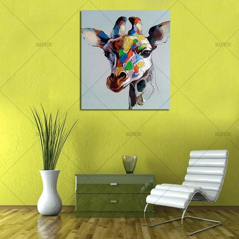 Hand Painted Child Giraffe Animals Hand Painted Modern Impression Canvas Paintings for kid's room