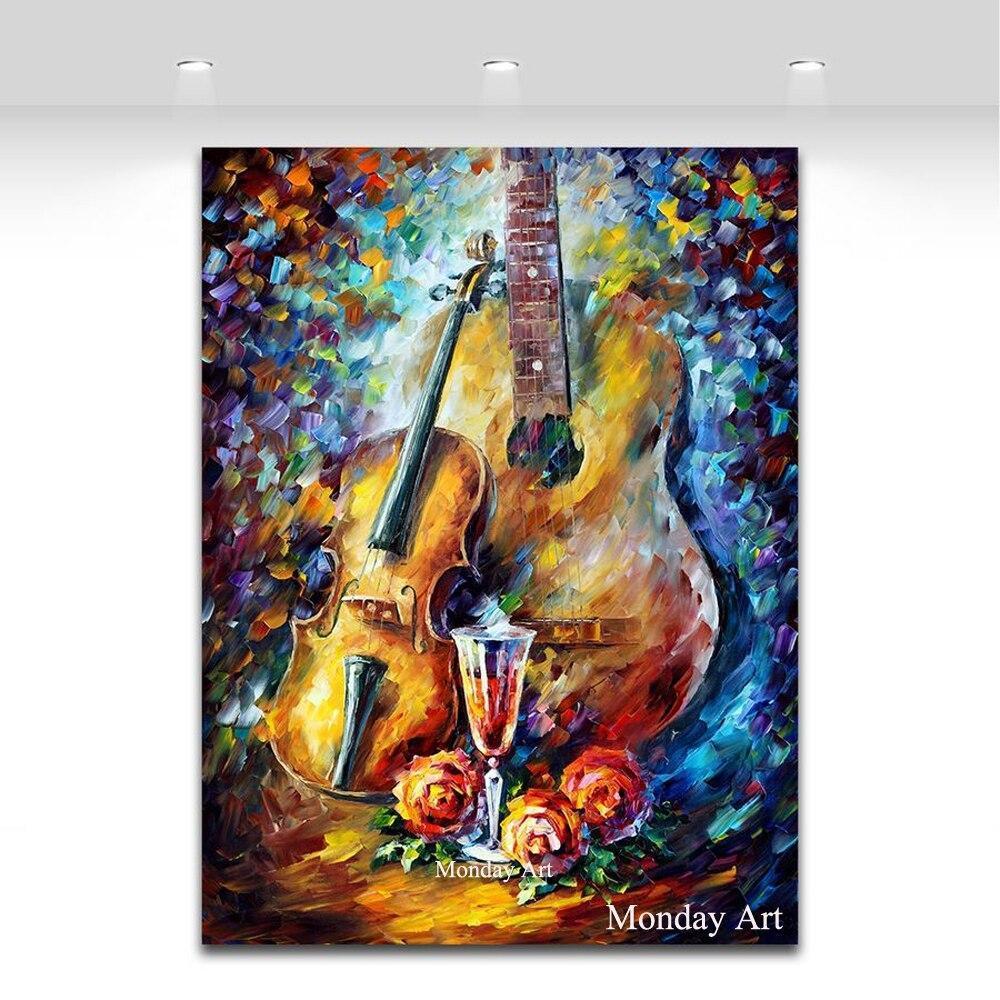 Hand Painted Knife Gold Tree On Canvas Violin Paintings Modern Abstract Wall Art