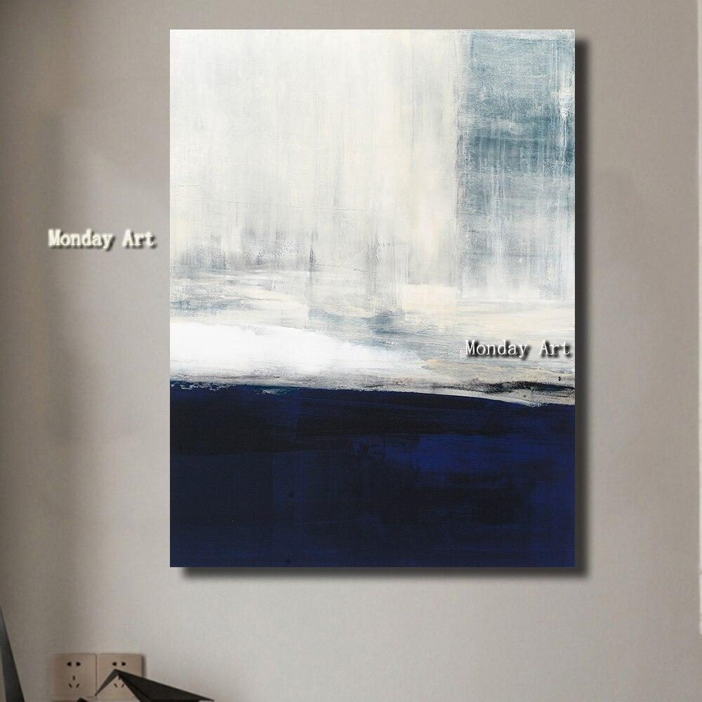 Hand Painted Modern Abstract White Blue Art Canvas painting art Hand Painted On Canvas