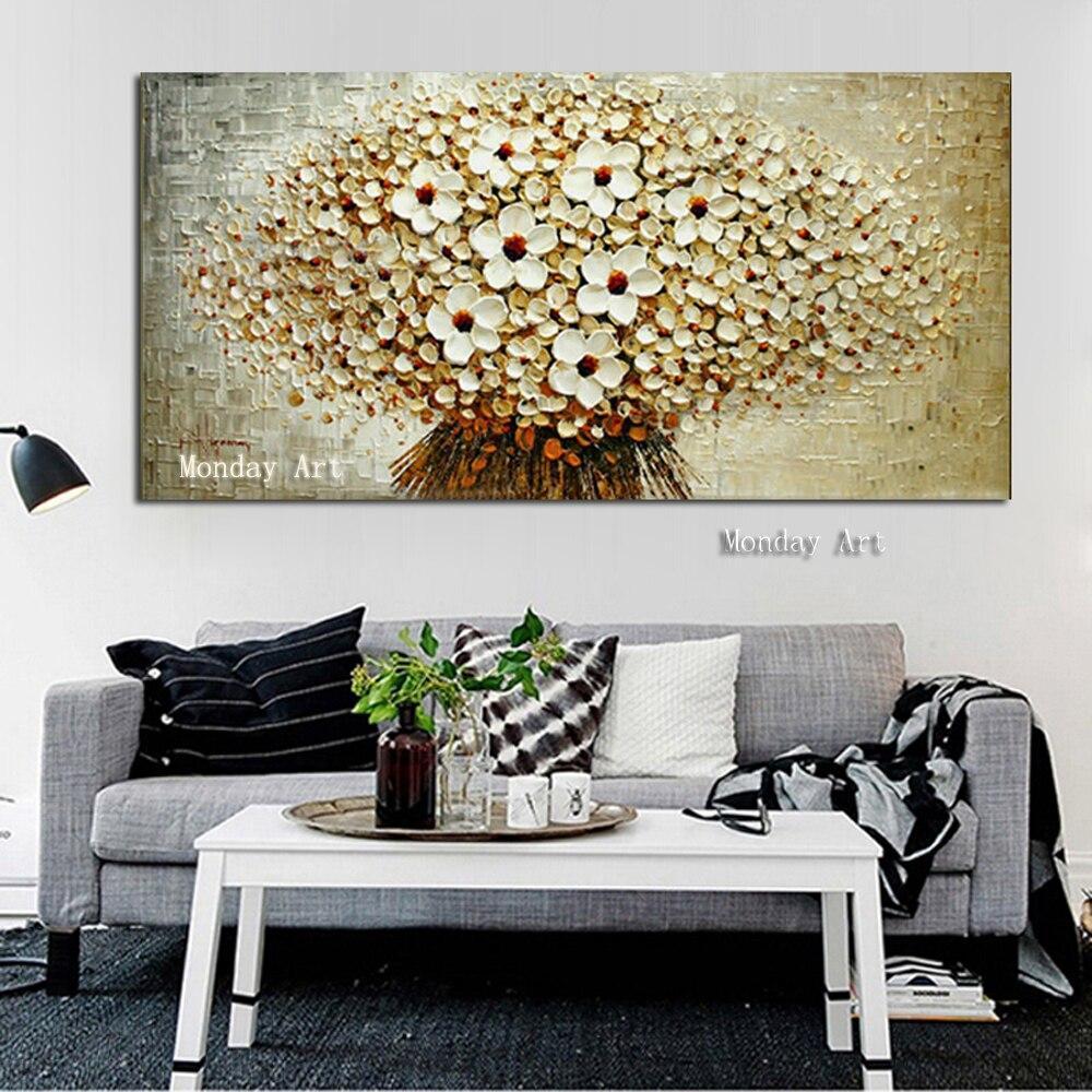Hand Painted Modern Canvas on 3D Palette knife Tree Flowers Painting living room