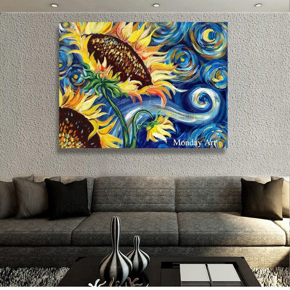 Hand Painted Modern Flowers Painting Still Life Sunflower Van Gogh Style Wall landscape painting