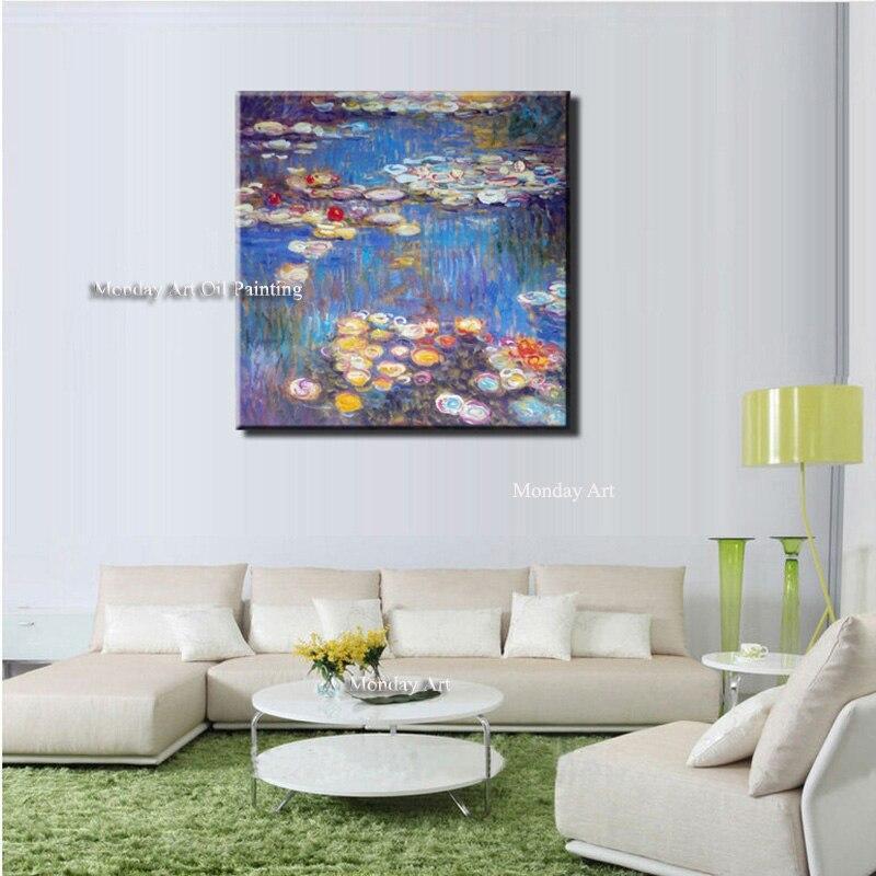 Hand Painted modern Landscape Lotus lake On Canvas Wall Lotus flower