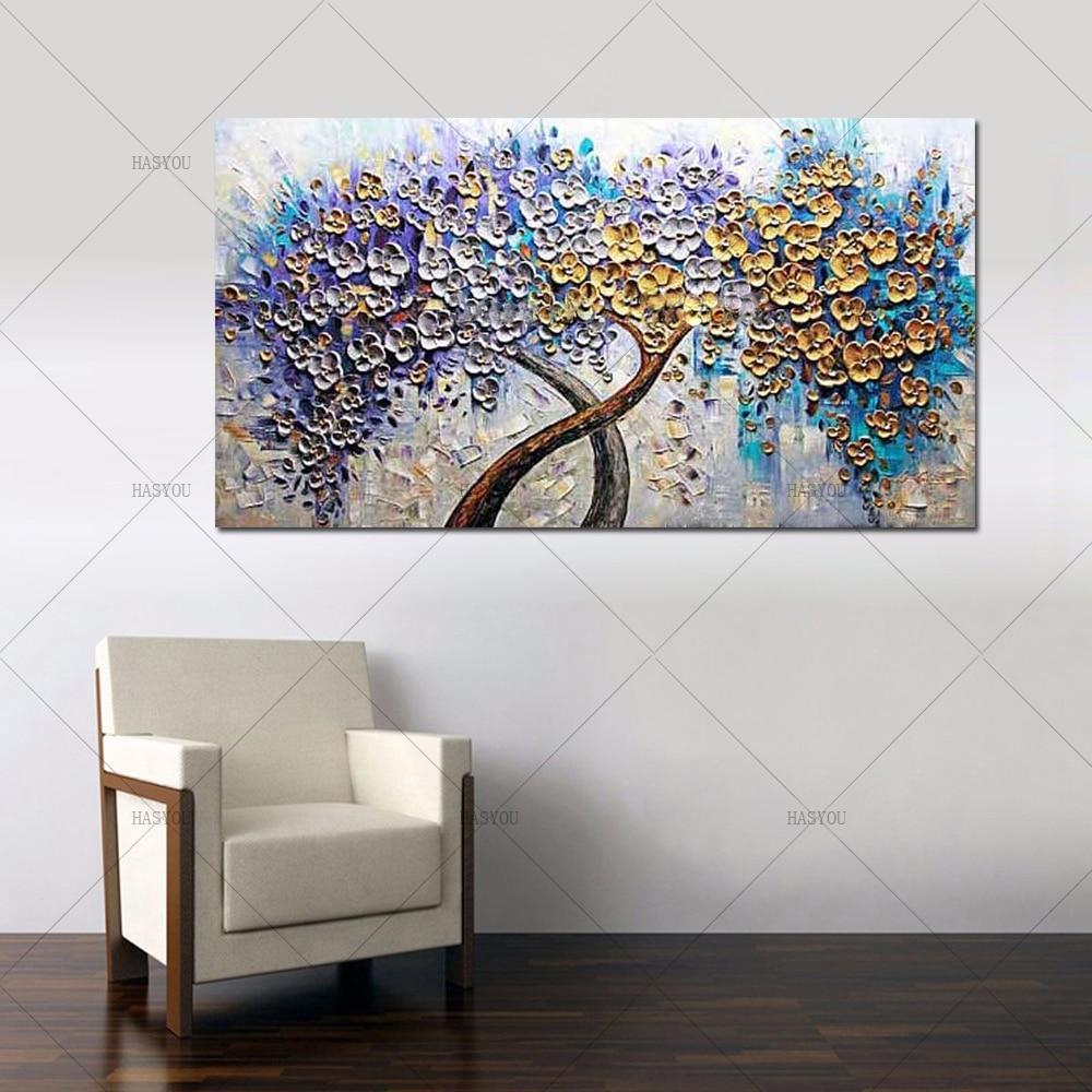 Hand Painted Palette Knife Golden Flower Tree 1 Panel oil painting Wall Art picture On Canvas Decorative