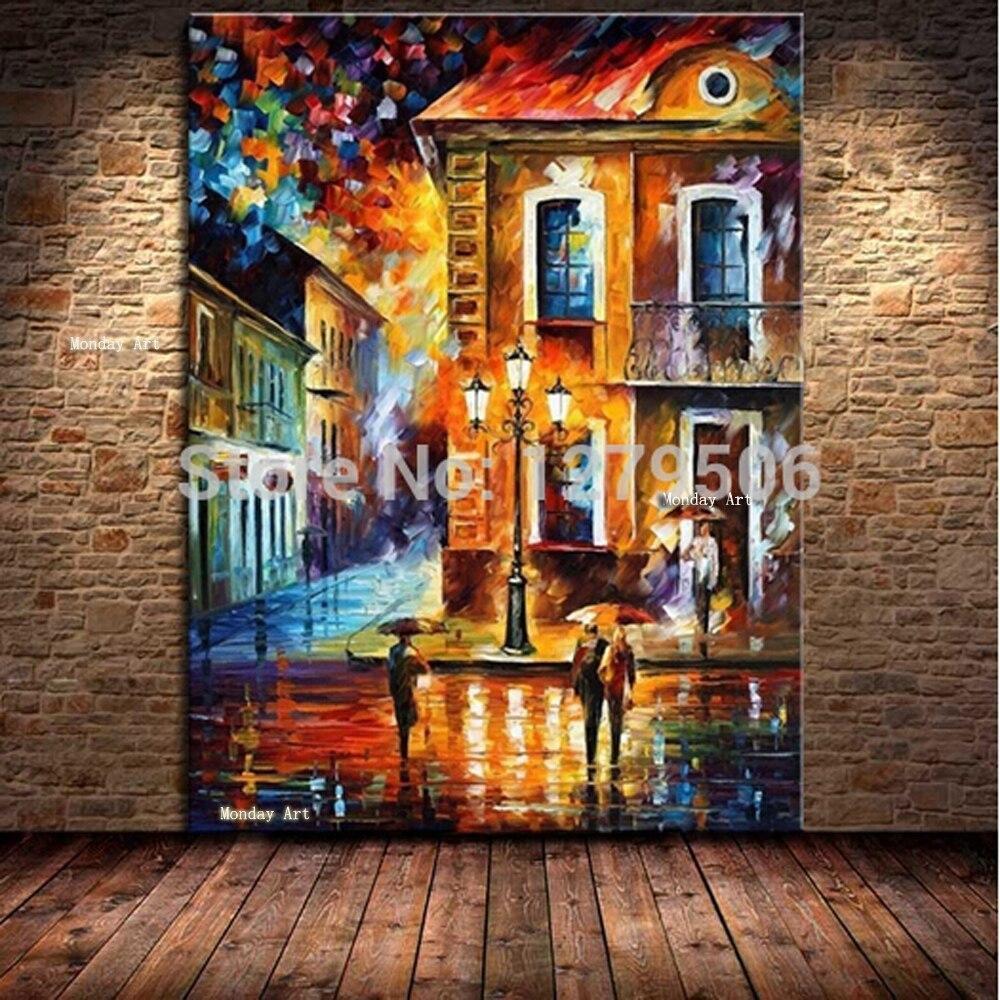 Hand Painted Street View Landscape Knife Palette Canvas for