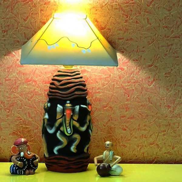 Hand Painted Terracotta Lamp Dancing Ganesha