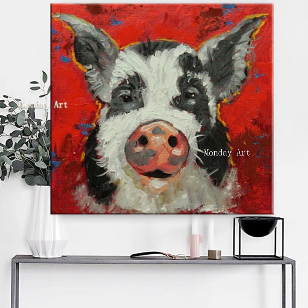 Hand Painted wall cute pig oil painting of lovely pig cartoon Hand Painted animal oil painting kid's room decoration
