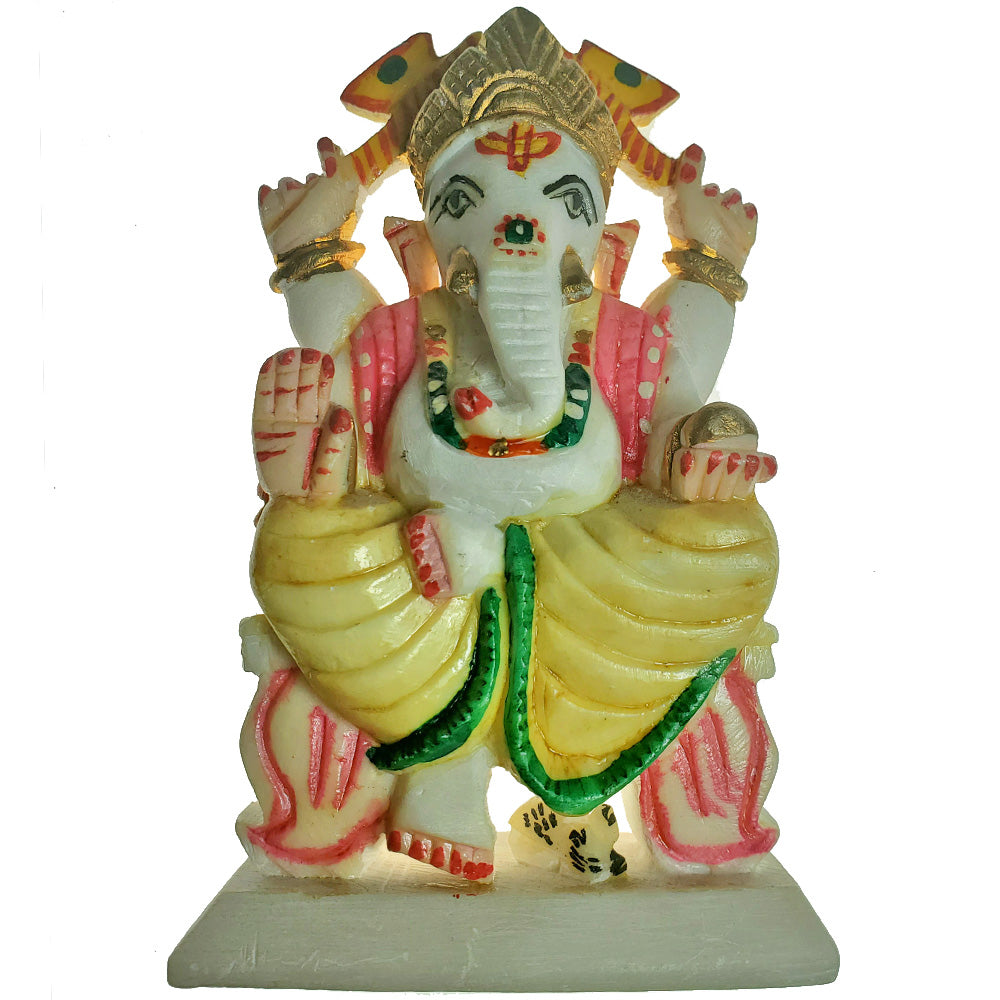Hand Painted White Marble Texture Ganesha Statue Sculpture