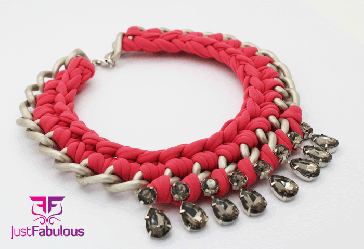 Handmade Statement Necklace-Crochet Chain with Teardrop Cup Chain