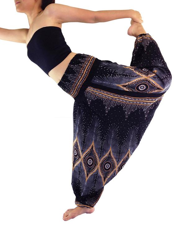 Harem Pants Women Yoga Pants Drop Crotch Aladdin Pants Maxi Pants Boho Pants Gypsy Pants Clothing Jumpsuit & Romper Trouser Black (HP49)