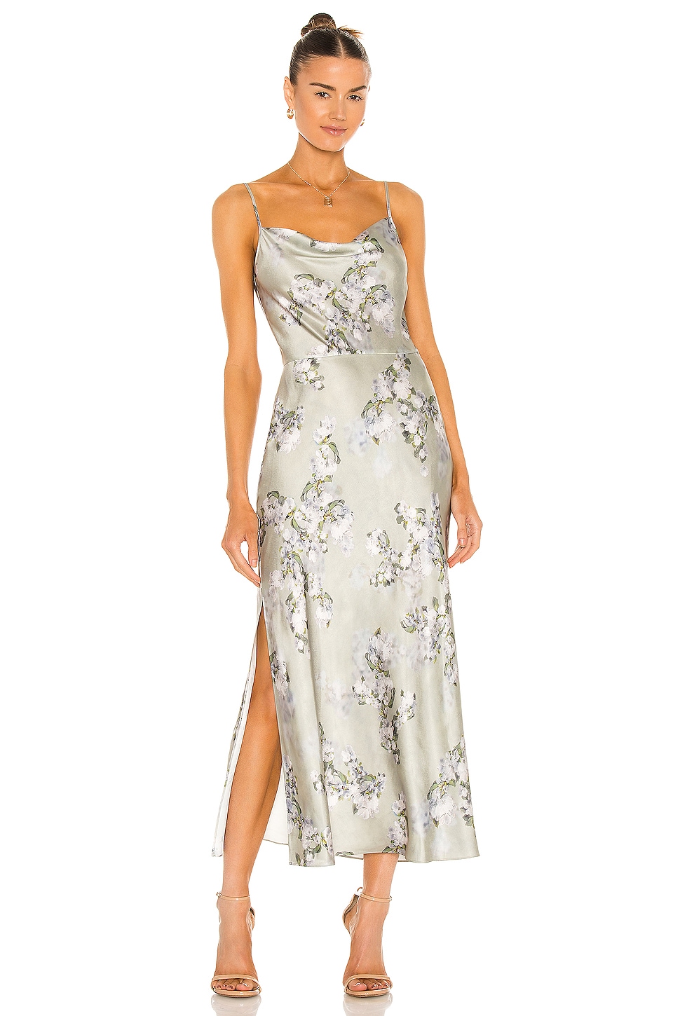 Hazy Blossom Cowl Neck Slip Dress in Celery