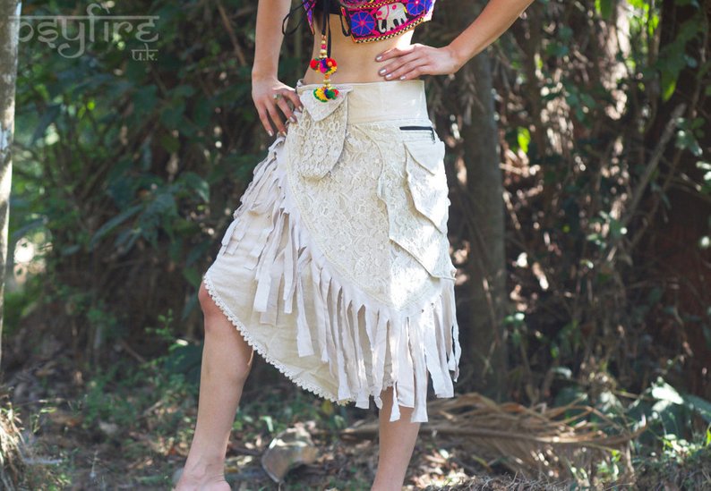 HEMP PIXIE Skirt - Pocket Belt Skirt, Hemp Skirt, Lace Miniskirt, Psytrance Skirt, Gypsy Skirt, Mini Skirt, Psy Clothing, Festival Wear