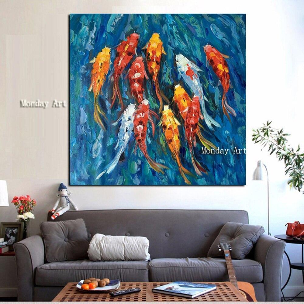High quality Hand Painted Goldfish Modern Abstract Animal Fish Canvas Painting
