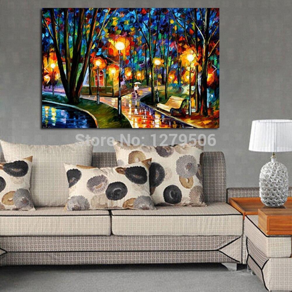 High Quality Knife On Canvas Hand Painted Abstract Modern art Rain Tree Road Palette oil painting
