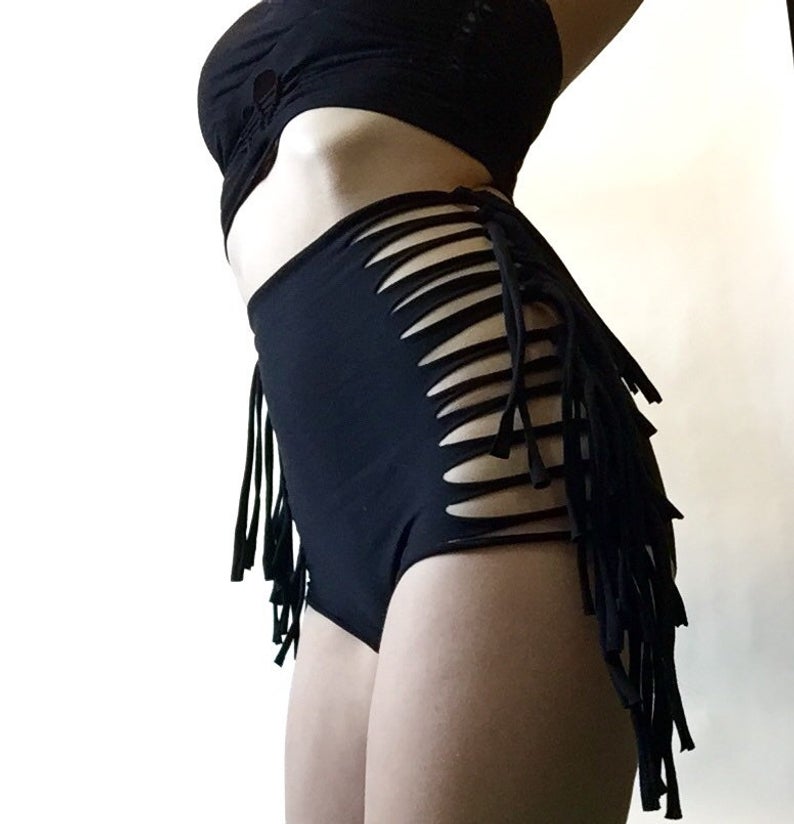 High waisted Booty Shorts with fringe burner shorts outfit highwaisted shorts high rise panties Slit Weave shorts festival outfit shorts