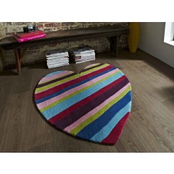 HK379 Striped Heart Multicoloured Childrens Rug By Think Rugs