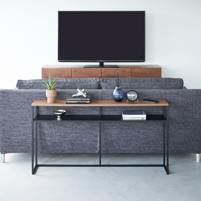 Home Tower Long Console Table For Entryway Or Hallways, Narrow Behind Sofa Table With Wooden Top And Metal Shelf - Shelf, 26" - Steel