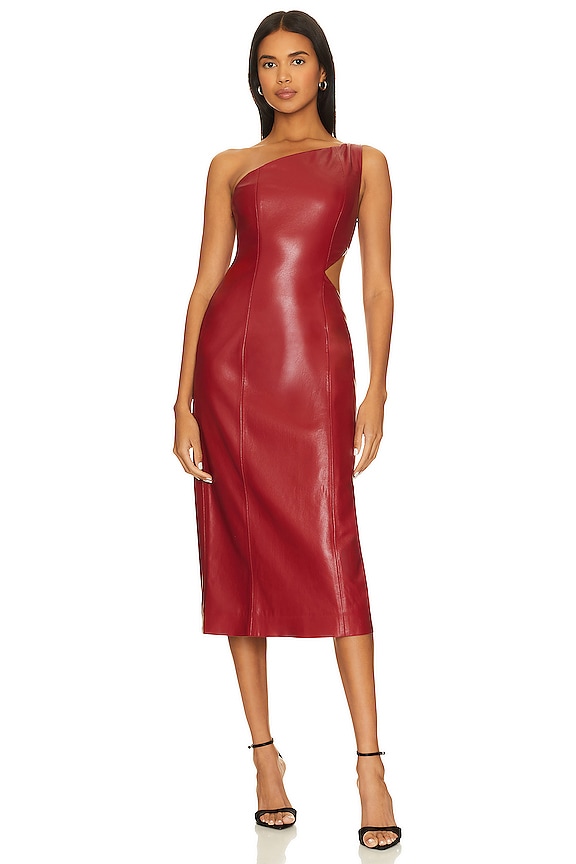 House of Harlow 1960 x REVOLVE Bordeaux Faux Leather Midi Dress in Red | REVOLVE