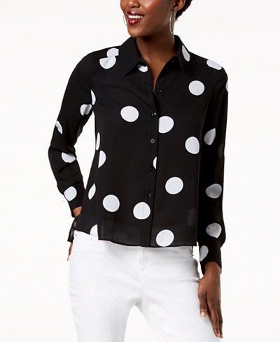 I.N.C. Polka-Dot High-Low Shirt, Created for Macy's