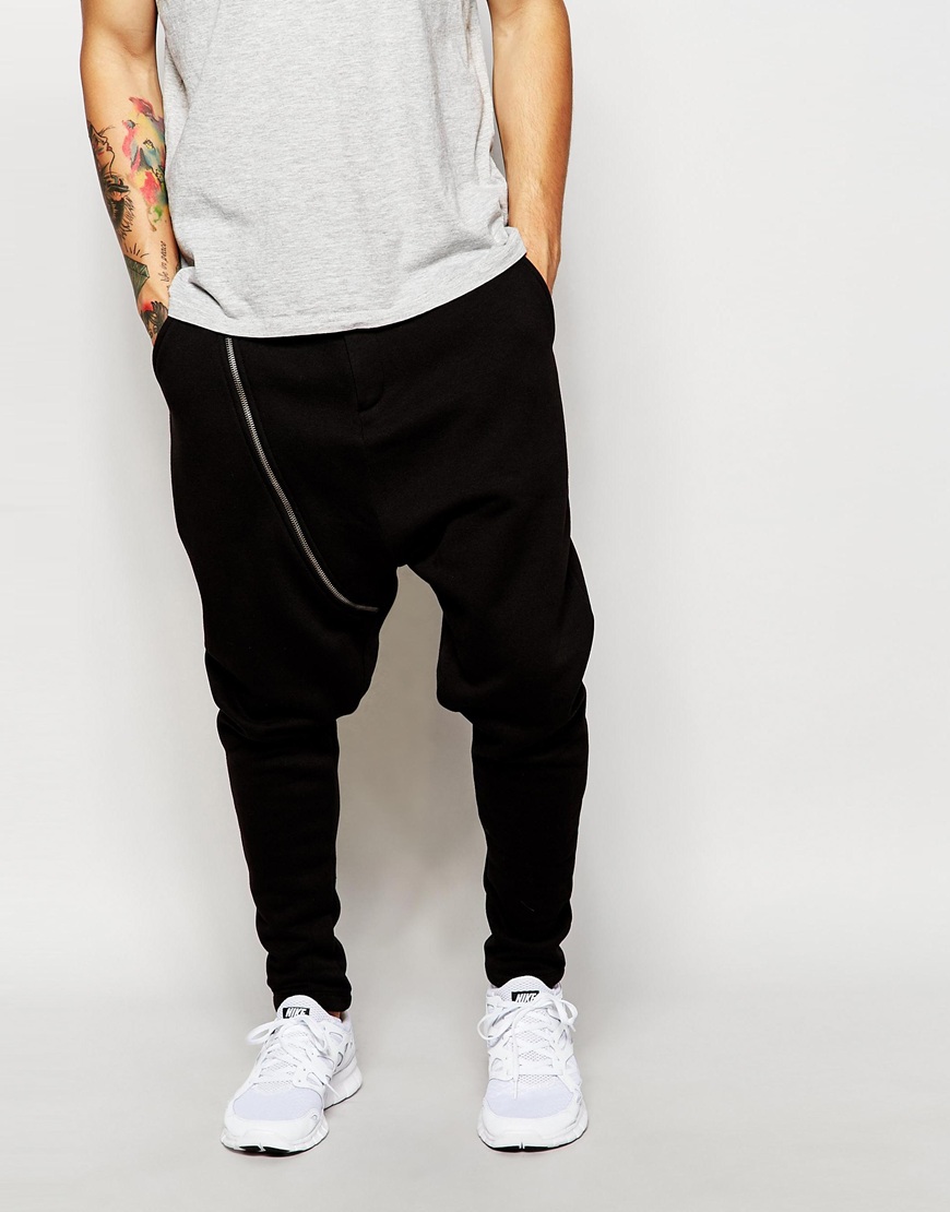 Image 1 of ASOS Drop Crotch Joggers With Biker Zip Detailing