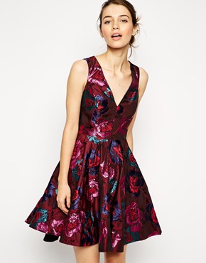 Image 1 of ASOS Floral Jacquard Dip Hem Skater
