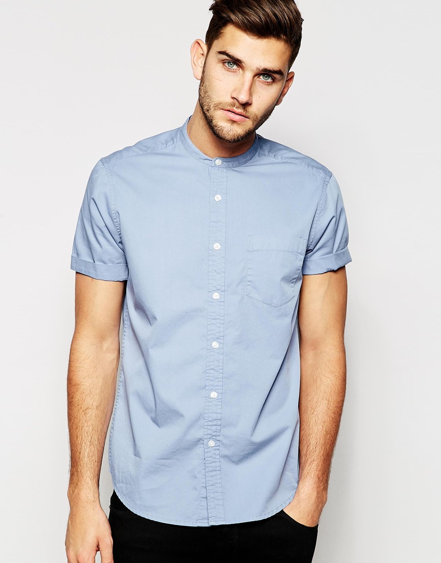 Image 1 of ASOS Lightweight Shirt In Twill With Grandad Collar