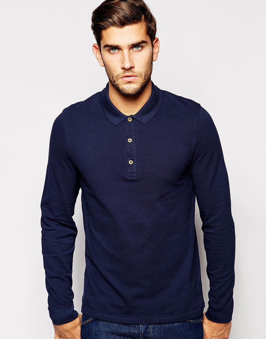 Image 1 of ASOS Long Sleeve Polo Shirt In Pique
