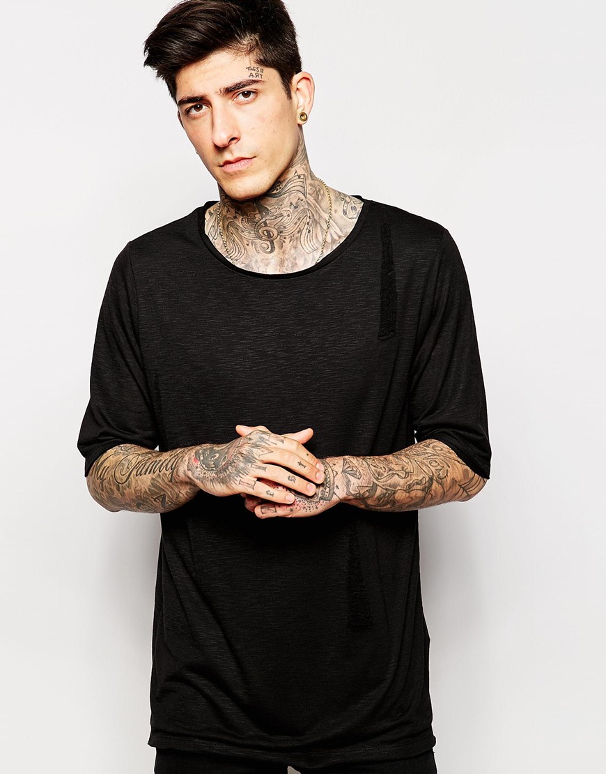 Image 1 of ASOS Longline T-Shirt With Distressing And Raw Edges In Slub Fabric